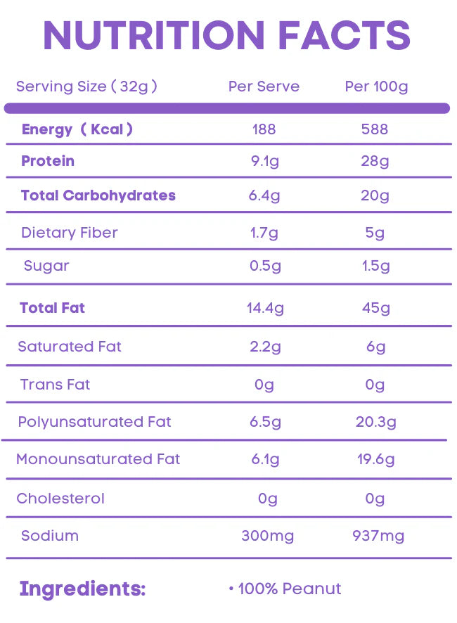 Made with 100% roasted peanuts and nothing else, it's a creamy, protein-rich delight that fits perfectly into keto, diabetic-friendly, or low-carb lifestyles. No added salt, sugar, or palm oil — just smooth, delicious peanut butter in its purest form.